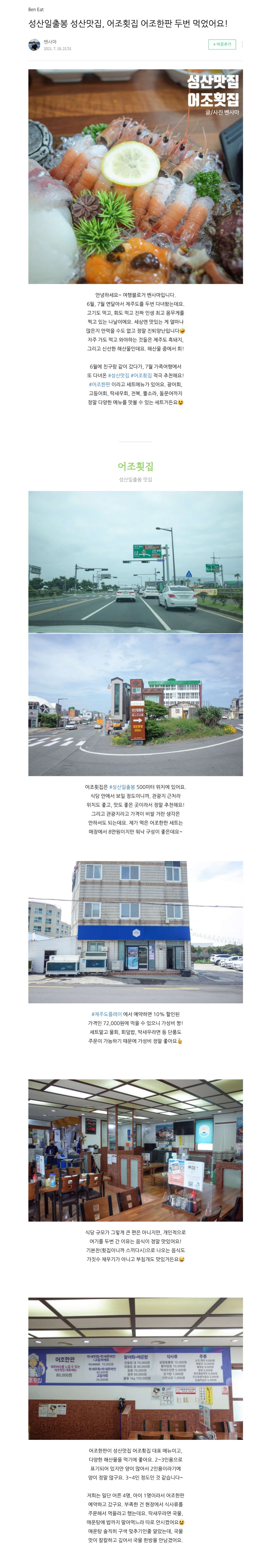 블로거 벤사마님이 다녀온 성산 어조횟집 리얼후기
