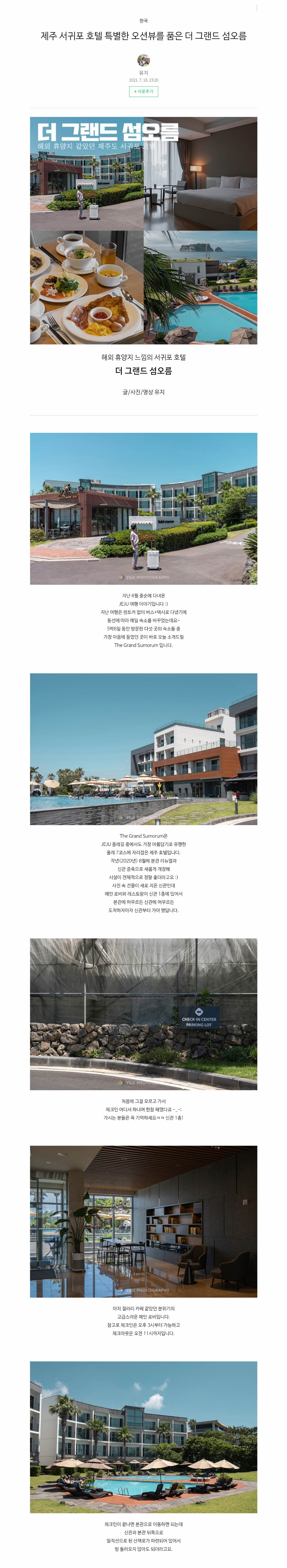 블로거 유지님이 다녀온 더 그랜드 섬오름 리얼후기