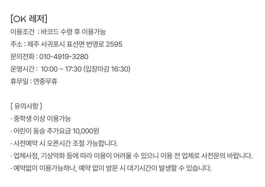 업체사정, 기상악화 등에 따라 이용이 어려울 수 있으니 이용전 업체로 사전 문의 바랍니다.