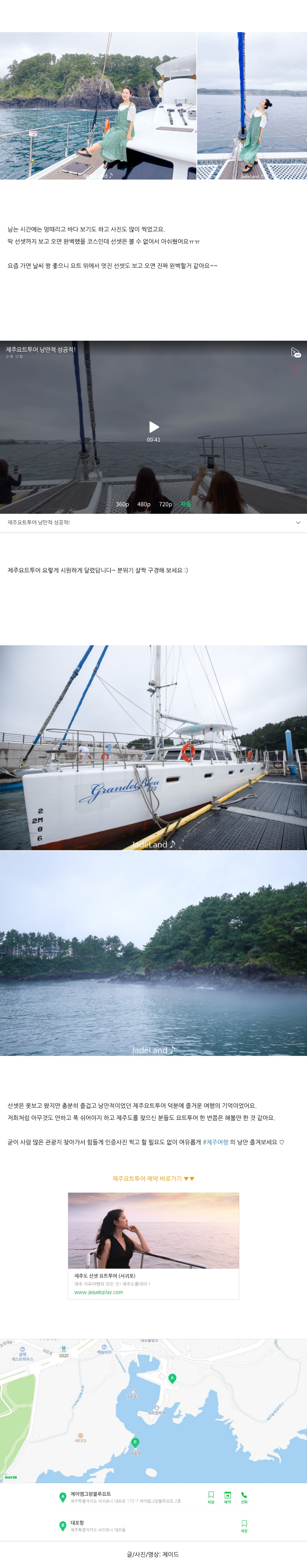 블로거 제이드님의 제주도 선셋 요트투어 리얼후기