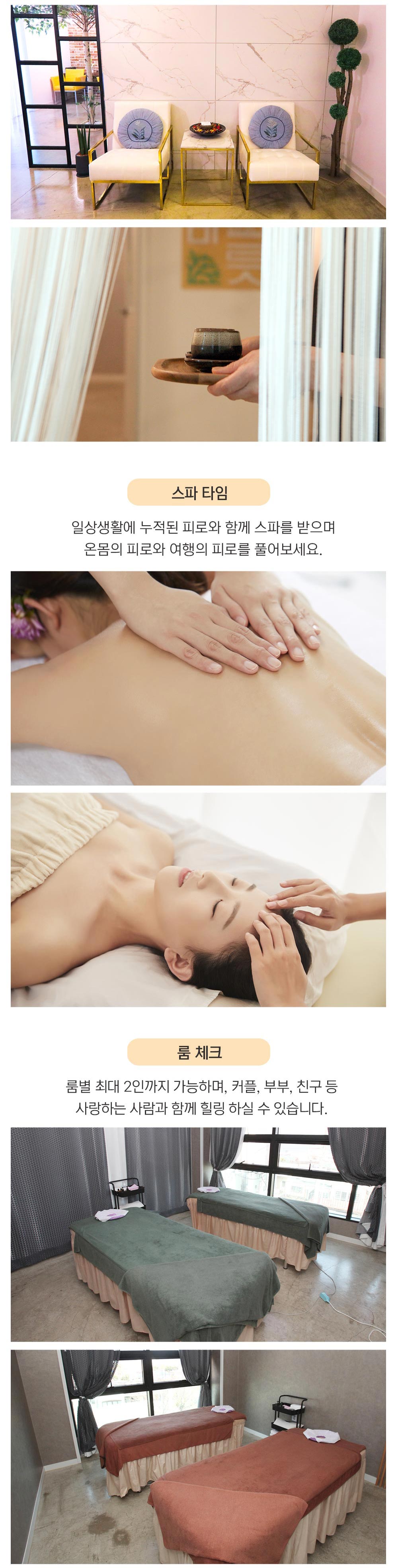 - 마사지 시간에 늦어도 종료시간은 동일하오니 최소 10분 전에는 도착해주세요!