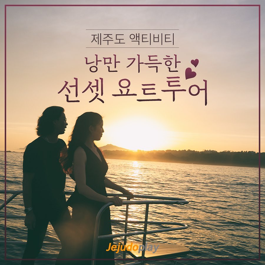 제주도 서귀포에서 즐기는 낭만가득 선셋 요트투어멋있는 풍경으로 눈도 즐겁고바다 낚시로 손도 즐겁고무제한 핑거푸드로 배도 즐겁다사랑하는 사람과 함께 멋있는 인생샷과 추억! 체험해 보세요