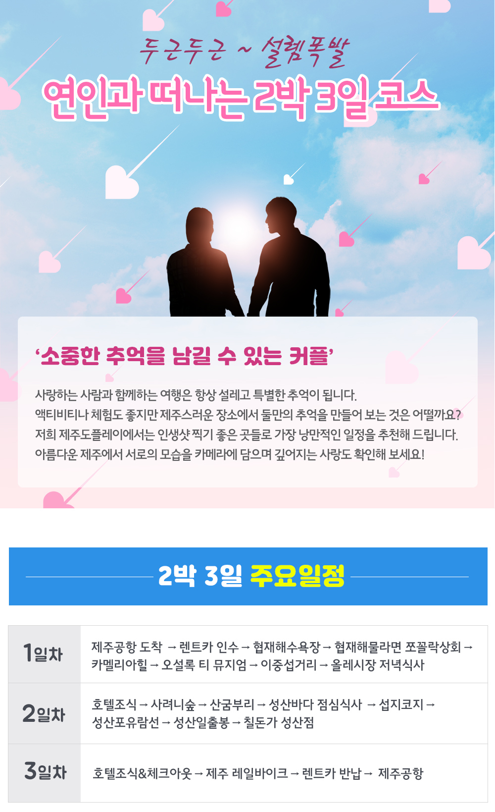사랑하는 연인과 제주로 낭만적인 여행을 떠나보세요!