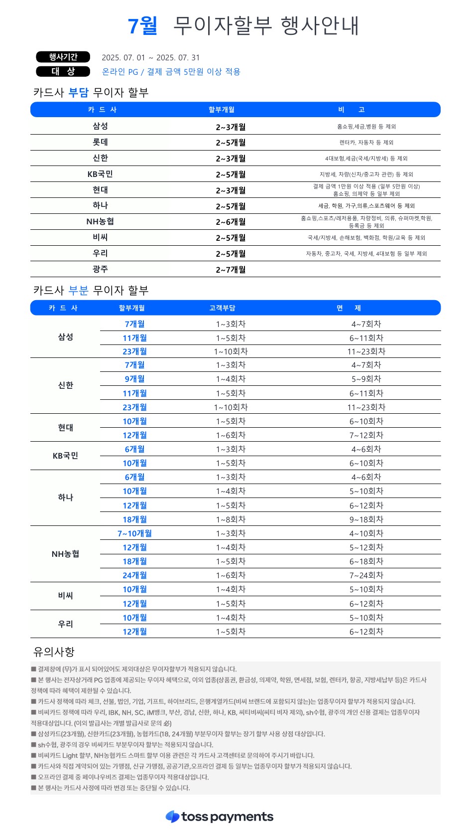 7월 카드 무이자 행사 안내