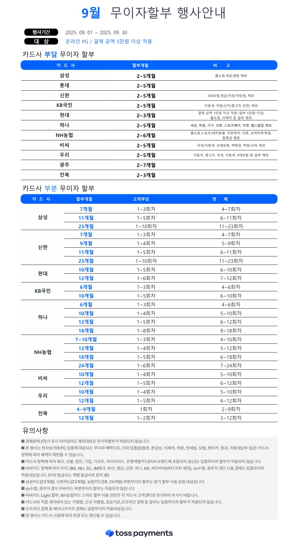 9월 카드 무이자 행사 안내