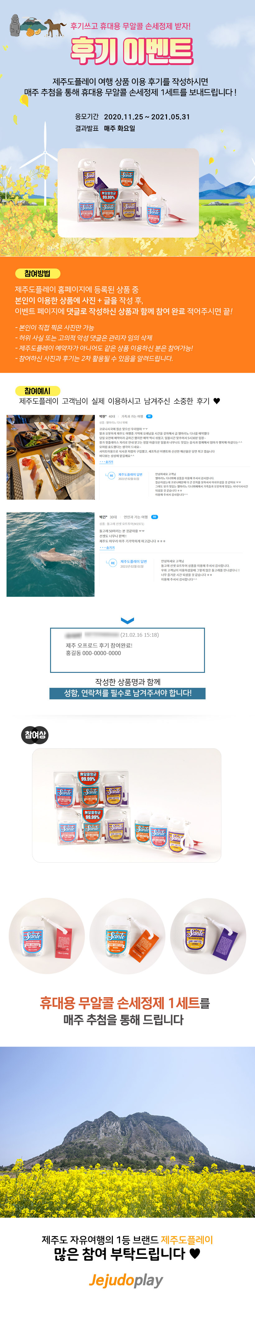 후기쓰시고 휴대용 손소독제 받아가세요~!